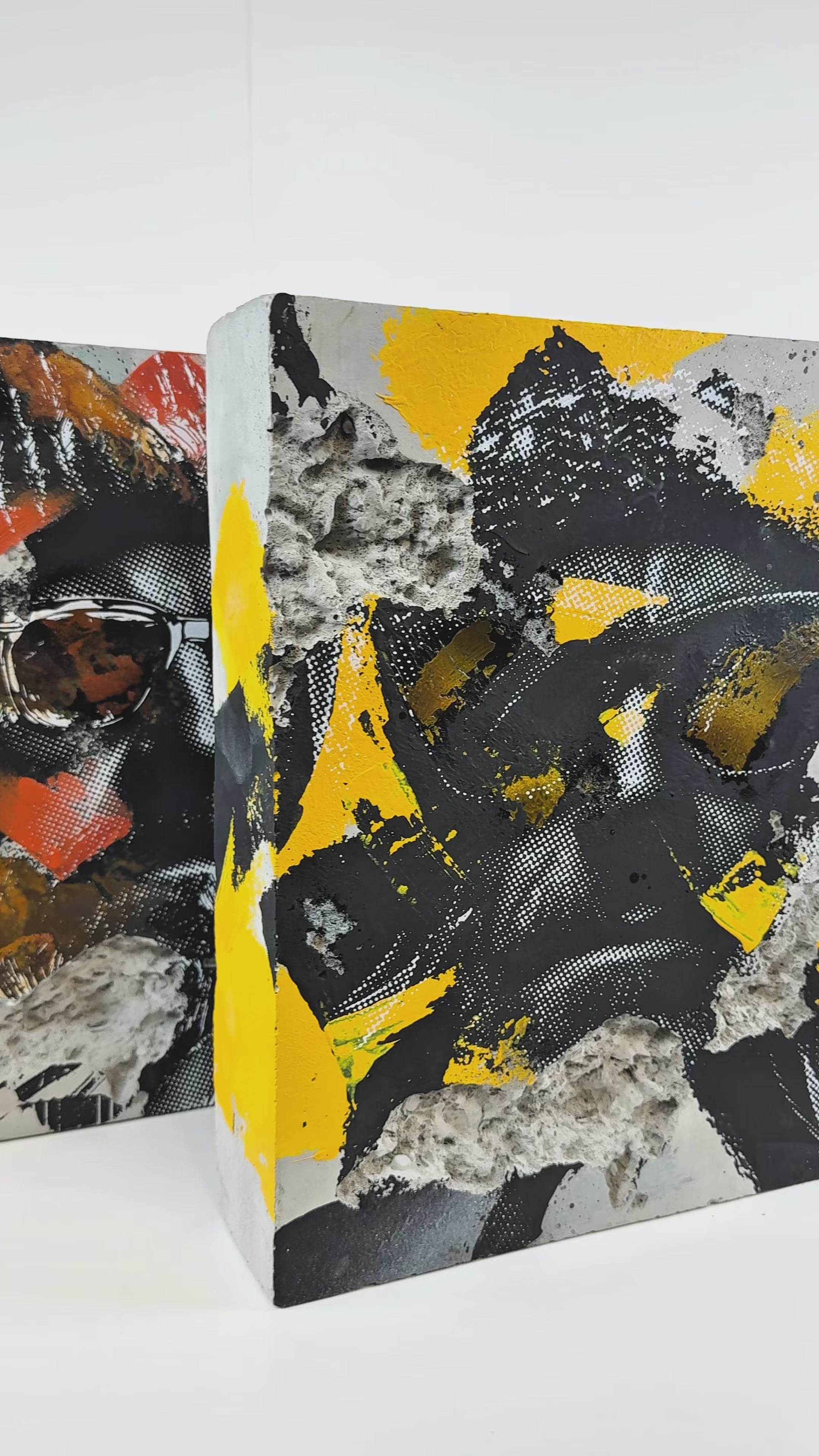 Painting on concrete block sculpture.